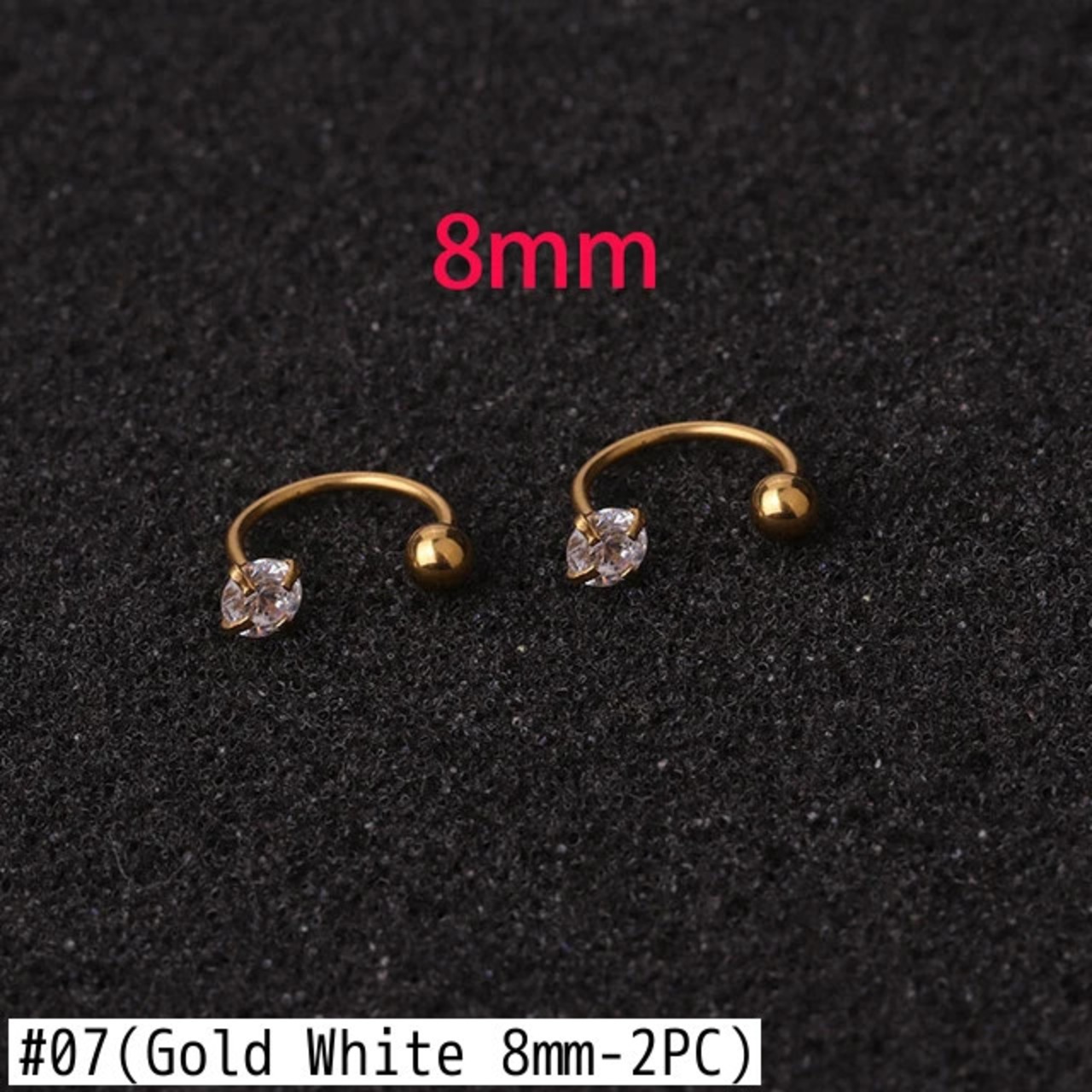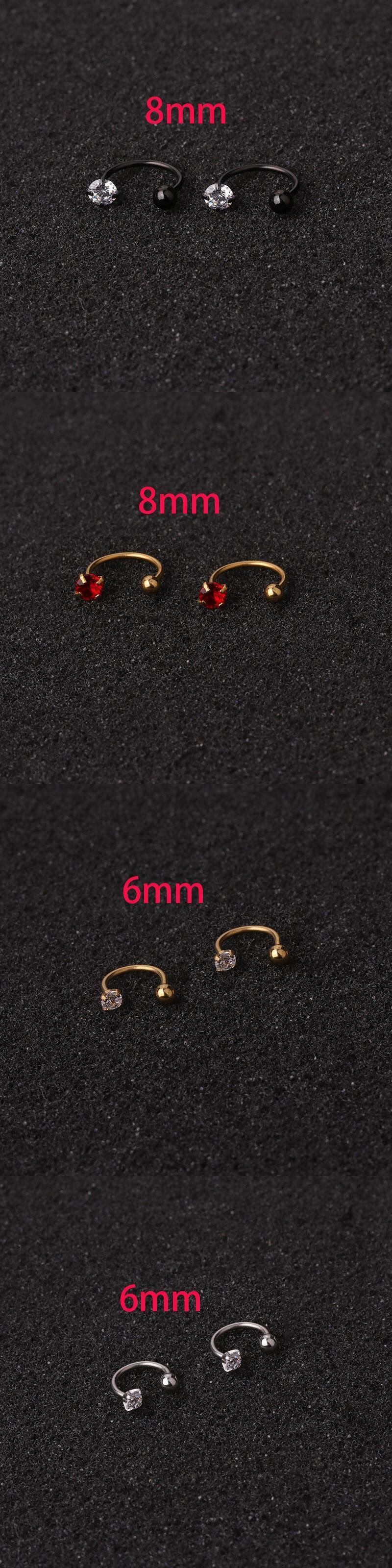 送料無料 2PC ステンレス鋼ジルコン Cz フープ女性耳珠軟骨ヘリックススタッドピアス巻貝ルーク Daith ローブ耳ネジピアスジュエリー イヤリング リング 指輪 AE121233223329999070589