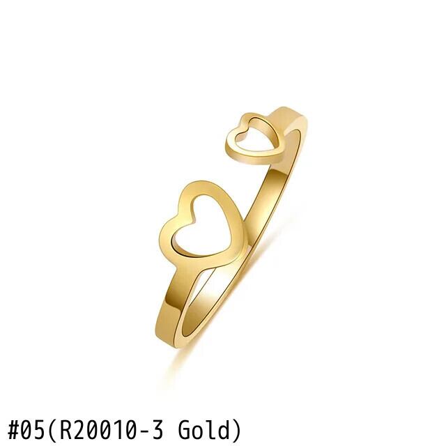 送料無料 ゴールドカラーメッキステンレス鋼調節可能な開口リング女性ジルコンハートクロスちょう結び形状クリエイティブ指輪 リボン アジャスタブル AE1212332233258465142312