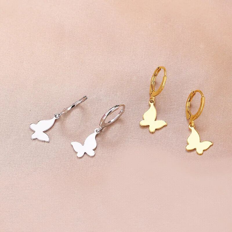 送料無料 ヴィンテージ動物蝶のイヤリング女性ゴールドシルバーカラー小さな蝶のペンダントイヤリング自由奔放に生きるジュエリーギフト 指輪 銀 ビンテージ AE1212332233248802758319
