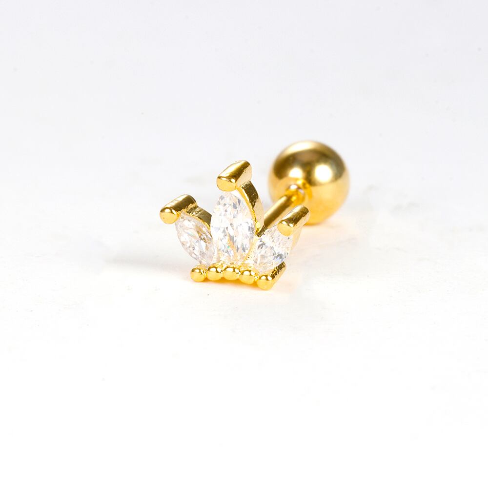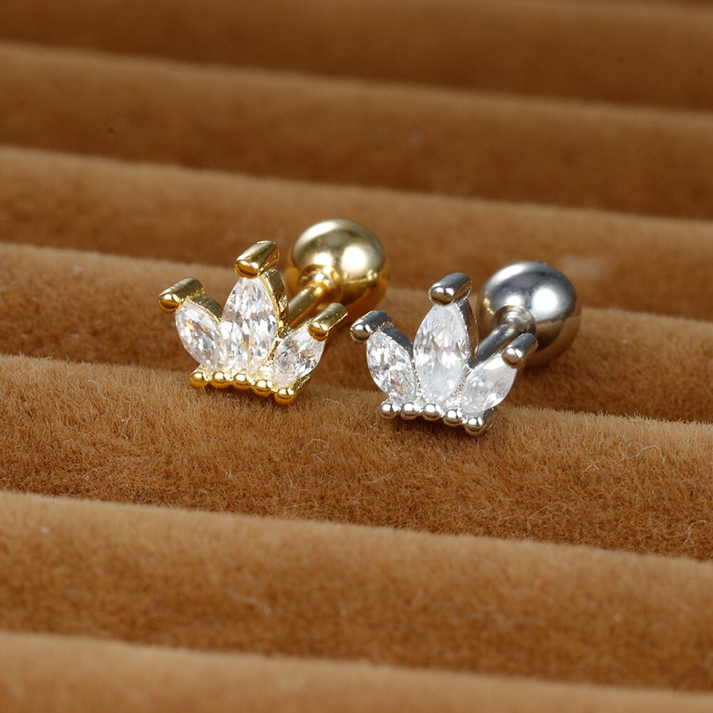 送料無料 1pc 316L ステンレス鋼クラウンミニジルコン軟骨ピアススタッドイヤリング女性ヘリックス珠ピアス女性のボディジュエリー AE1212332233258440538429