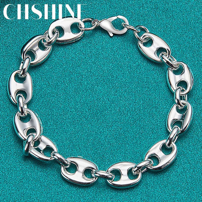 送料無料 CHSHINE 925 スターリングシルバー馬蹄バックル豚鼻ブレスレット女性男性結婚式婚約チャームジュエリー 銀 AE0077766687170611773
