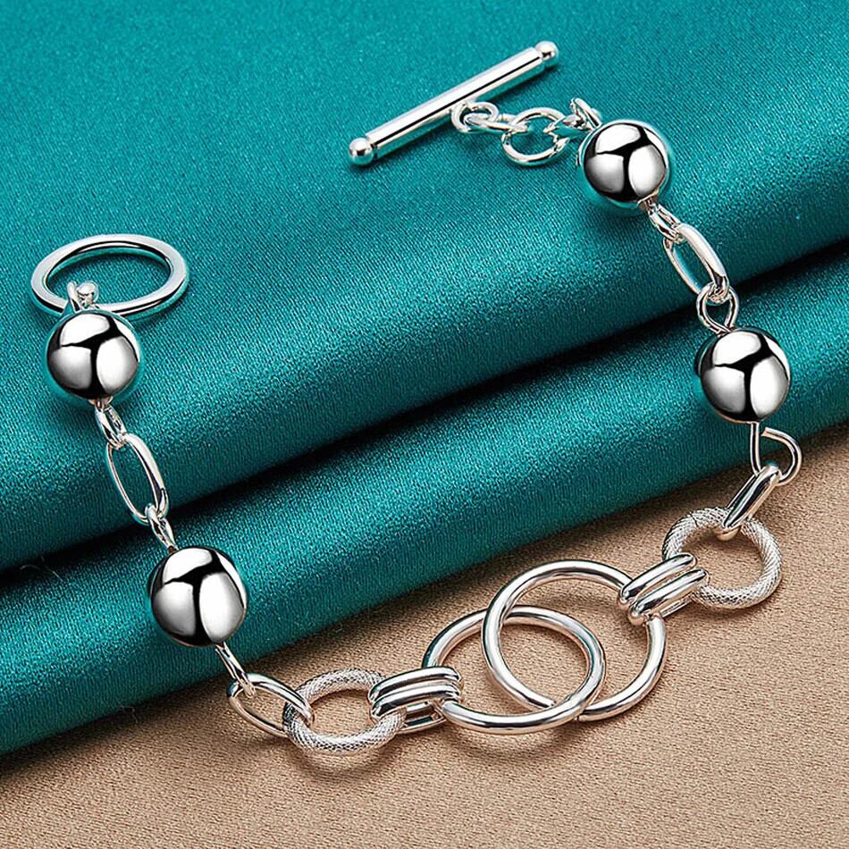 送料無料 CHSHINE 925 スターリングシルバーラウンドビーズチェーンブレスレット女性男性ウェディングパーティーチャームジュエリー 銀 AE0077766645146937724