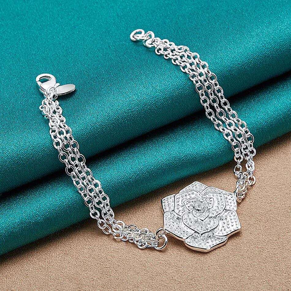 送料無料 CHSHINE 925 スターリングシルバービッグローズフラワーブレスレット女性のウェディングパーティーギフトジュエリー フラワーデザイン 銀 AE0077766666834117656
