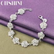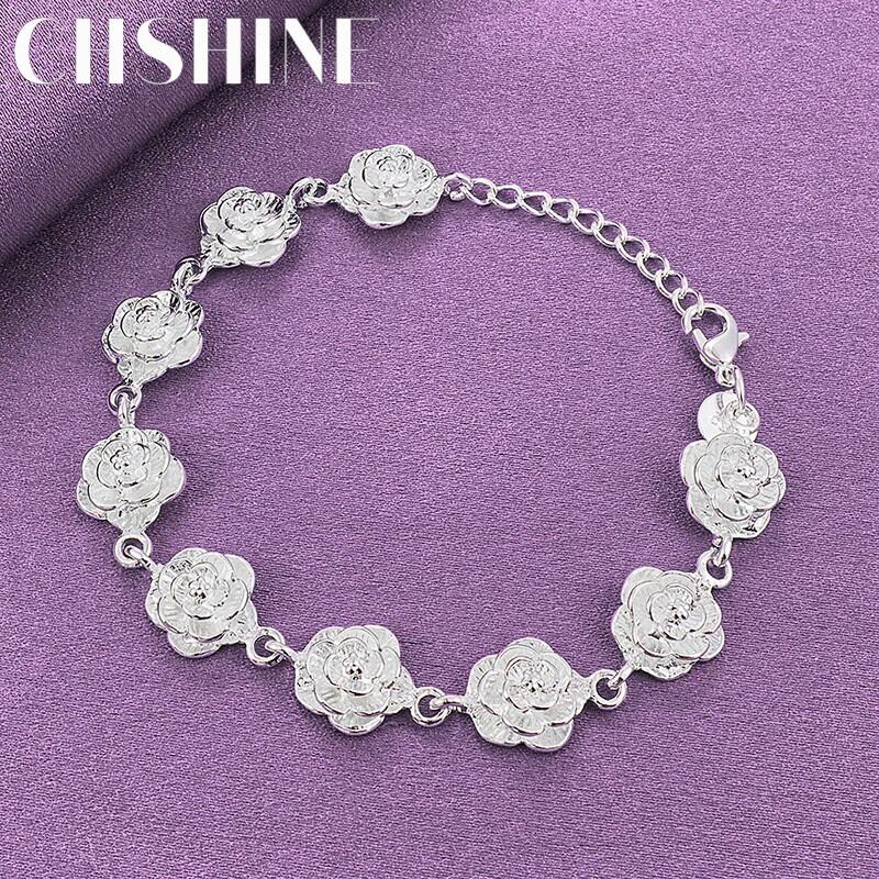 送料無料 CHSHINE 925 スターリングシルバーローズフラワーチェーンブレスレット愛好家ウェディングパーティーチャームジュエリー フラワーデザイン 銀 AE0077766677141025774