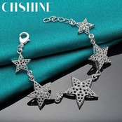 送料無料 CHSHINE 925 スターリングシルバー中空スターブレスレット女性の結婚式婚約パーティーチャームチェーンジュエリー 銀 AE0077766687310830091