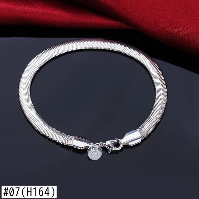送料無料 925 スターリングシルバー Clic フラット横向きチェーンブレスレット女性男性のパーティーウェディングジュエリーギフトpulseras 銀 AE0077766660004766285