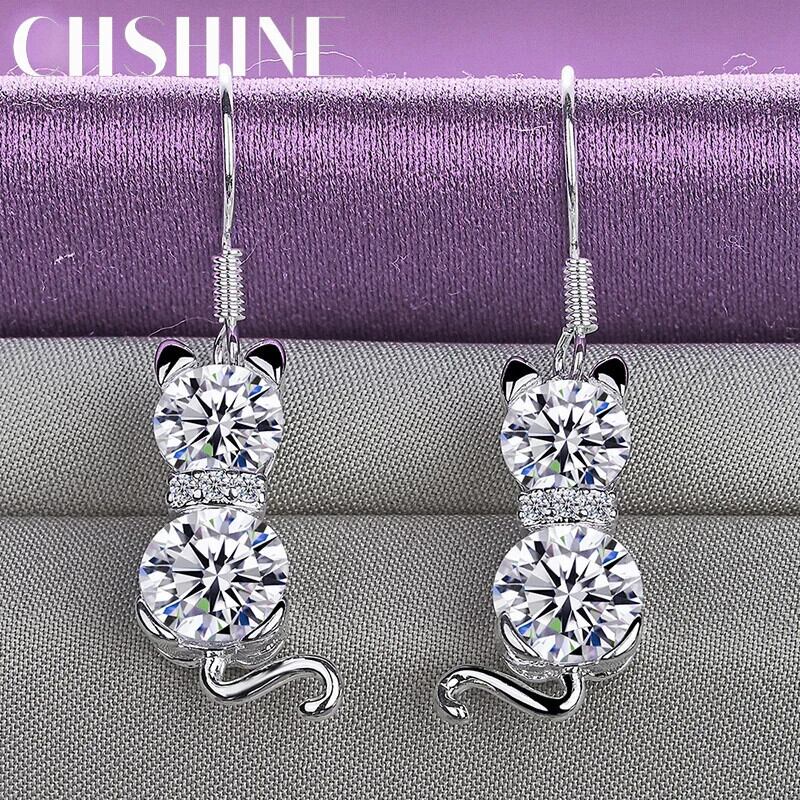 送料無料 CHSHINE 925 スターリングシルバー光沢のあるジルコンイヤリング女性チャームジュエリー 指輪 銀 AE0077766630675360586