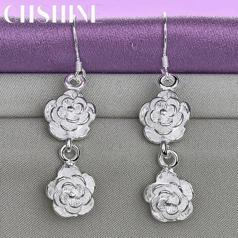 送料無料 CHSHINE 925 スターリングシルバーローズフラワーイヤリングチャームジュエリー女性のパーティーチャーム婚約ギフト耳飾り 指輪 フラワーデザイン 銀 AE0077766678833377231