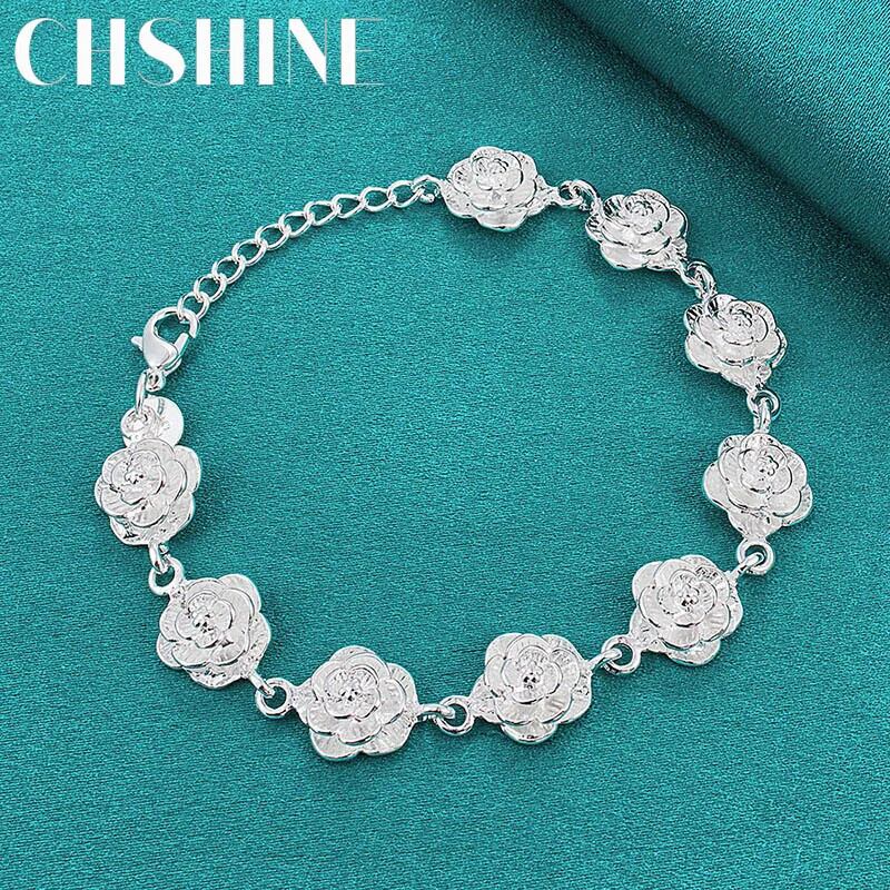 送料無料 CHSHINE 925 スターリングシルバーバラチャームブレスレットチェーン女性の結婚式婚約お祝いジュエリー 銀 AE0077766612489451374