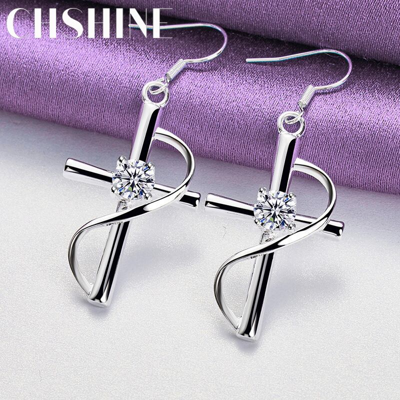送料無料 CHSHINE 925 スターリングシルバークロス光沢のあるジルコンイヤリング女性チャームジュエリー 指輪 銀 AE0077766699746485515