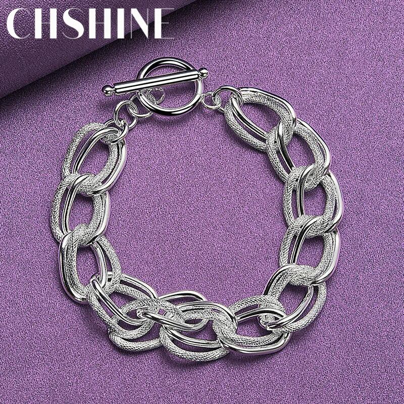 送料無料 CHSHINE 925 スターリングシルバー滑らかなマットダブルチェーンブレスレットチャームウェディングパーティー女性ジュエリー 銀 AE0077766624346766233