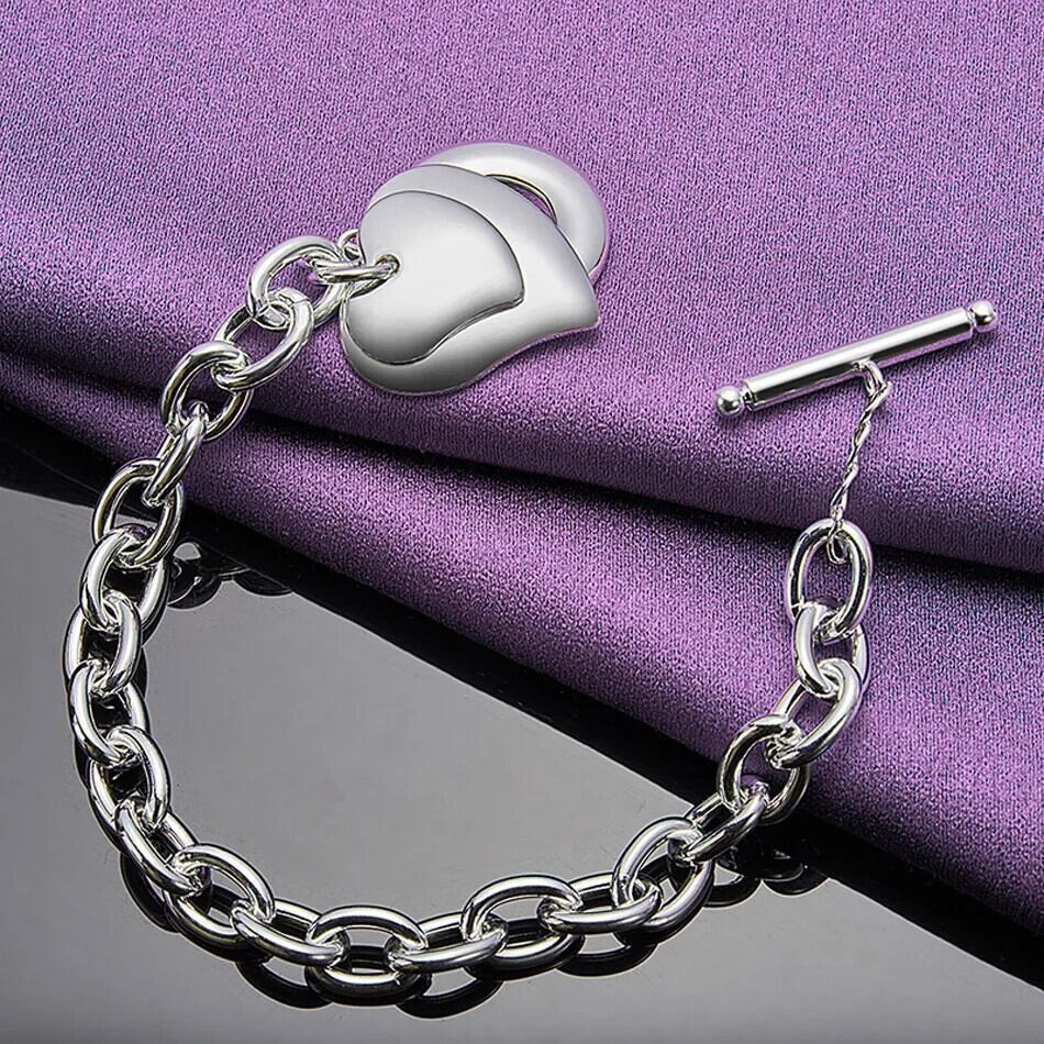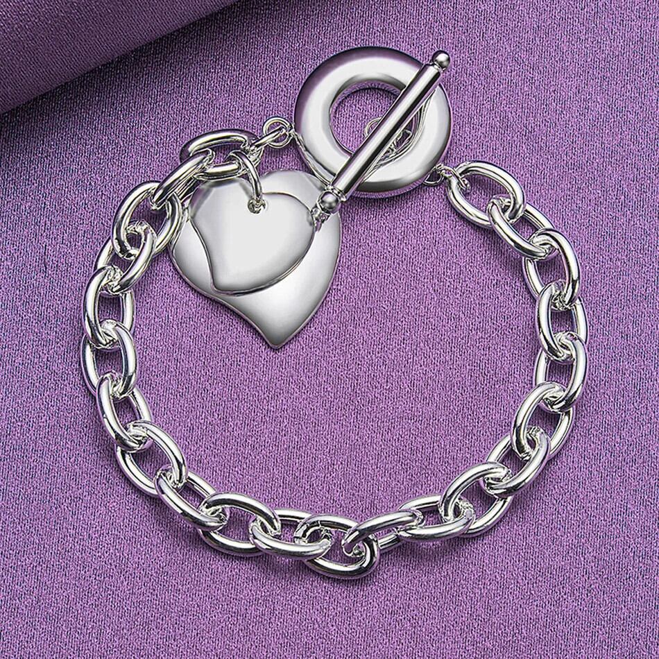 送料無料 CHSHINE 925 スターリングシルバーダブルハートペンダントブレスレット女性のウェディングチャームジュエリー 銀 AE0077766671326091833