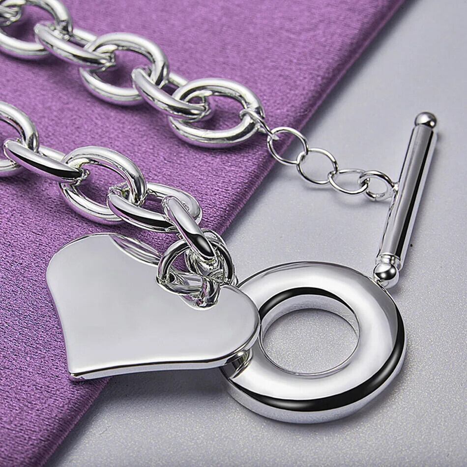 送料無料 CHSHINE 925 スターリングシルバーハートペンダントブレスレット OT チェーン女性チャームジュエリーギフト 銀 AE0077766646629991021