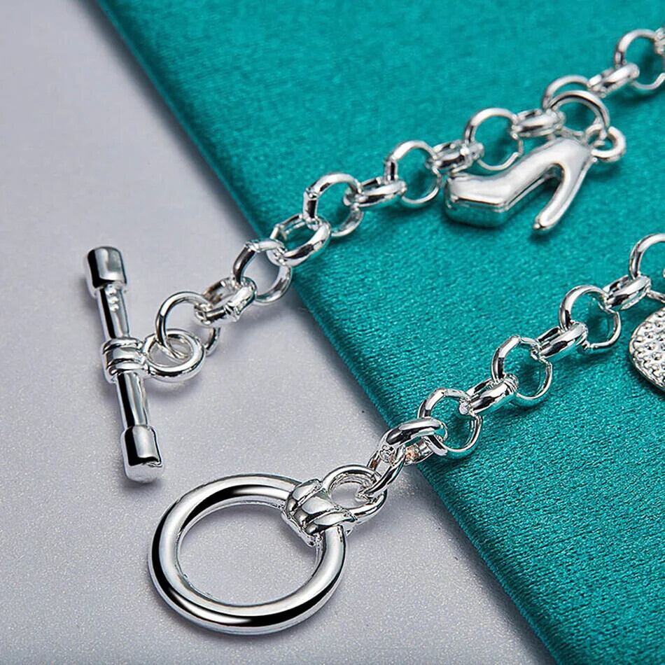 送料無料 CHSHINE 925 スターリングシルバーヒールバッグペンダントブレスレット女性のウェディングパーティーチャームジュエリー 靴 シューズ 銀 AE0077766659283342378