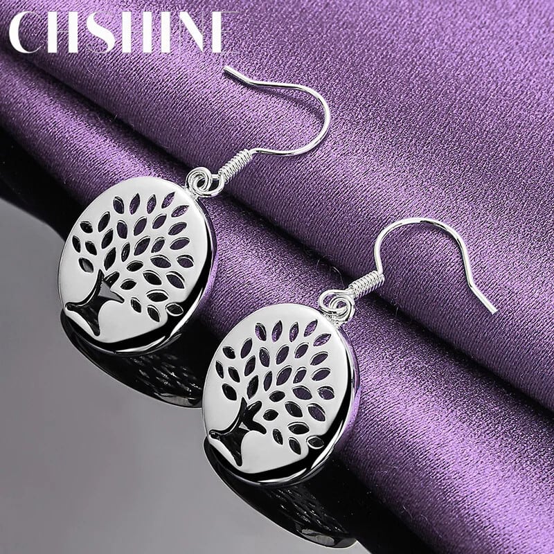 送料無料 CHSHINE 925 スターリングシルバー ラウンド ツリー イヤリング チャーム ジュエリー レディース パーティー イヤードロップ 指輪 銀 AE0077766618069805641