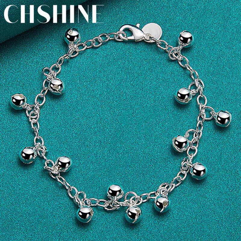 送料無料 CHSHINE 925 スターリングシルバー鐘ビーズブレスレットチェーン女性チャーム結婚式婚約パーティージュエリー 銀 AE0077766652670678963