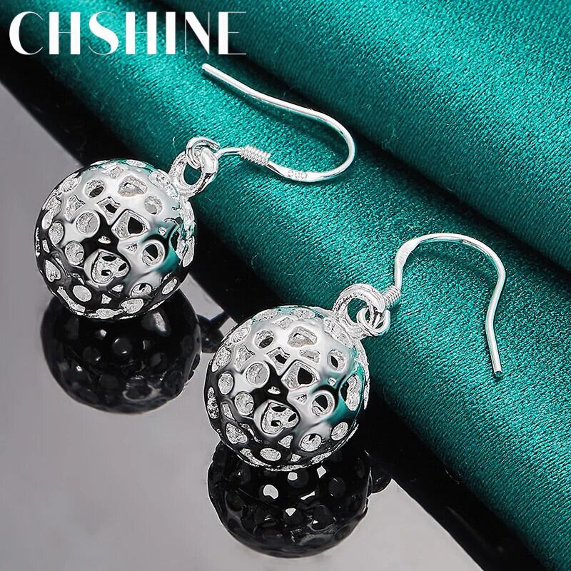 送料無料 CHSHINE 925 スターリングシルバー中空ラウンドボールイヤリングのペアイヤリング耳飾り女性のチャーム宴会パーティージュエリー 指輪 銀 AE007776661110715574
