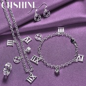 送料無料 CHSHINE 925 スターリングシルバーチャームローマペンダントネックレスリングイヤリングブレスレット女性男性婚約ジュエリーセット レース 指輪 銀 AE0077766613168755175