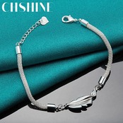 送料無料 CHSHINE 925 スターリングシルバーフィッシュハートネットスネークチェーンブレスレット女性の結婚式婚約パーティージュエリー 銀 AE0077766656214641034