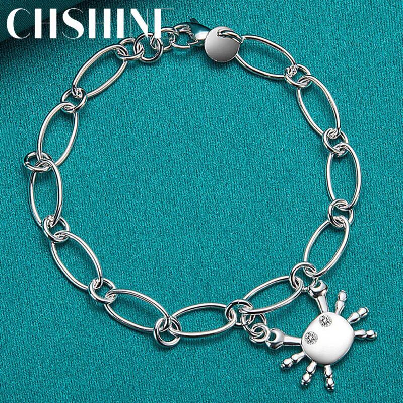 送料無料 CHSHINE 925 スターリングシルバーカニペンダントブレスレット女性のウェディングパーティージュエリー 銀 AE007776667062959541