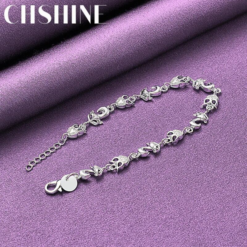送料無料 CHSHINE ファイン 925 スターリングシルバーチェーンブレスレット女性のウェディングパーティーチャームジュエリー 銀 AE0077766675739524434
