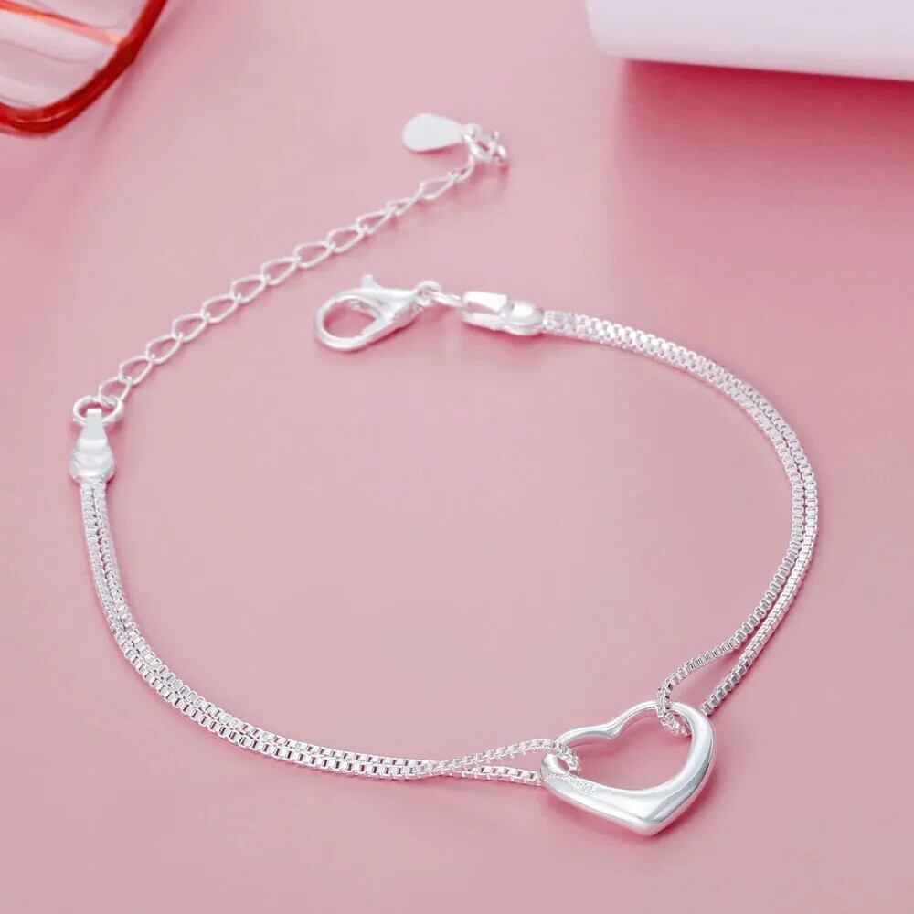 送料無料 ホットチャーム 925 スターリングシルバーロマンチックなハートブレスレット女性ファッションデザイナーパーティーウェディングジュエリークリスマス s 銀 AE007776665590463537