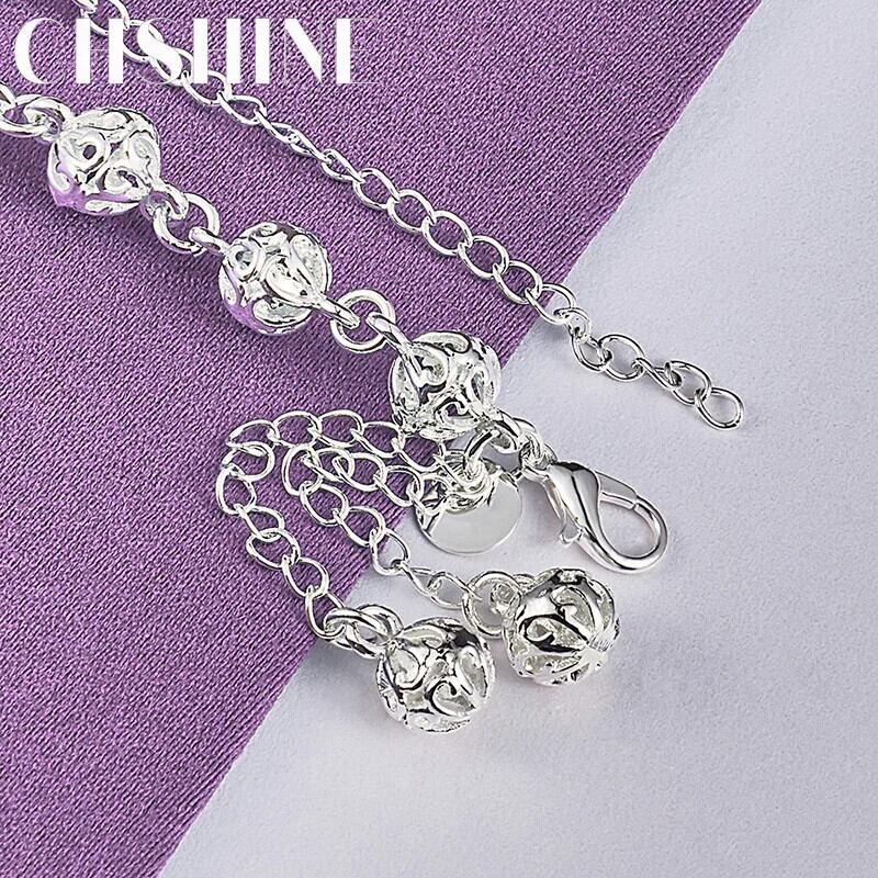 送料無料 CHSHINE 925 スターリングシルバー中空ボールチェーンブレスレット女性のウェディングパーティージュエリーギフト送料無料 銀 AE0077766673806572045
