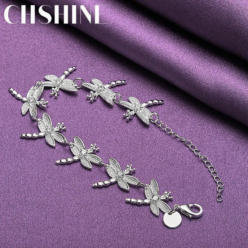送料無料 CHSHINE 925 スターリングシルバー トンボ チェーン ブレスレット レディース メンズ ウェディング パーティー チャーム ジュエリー 銀 AE0077766696614619119