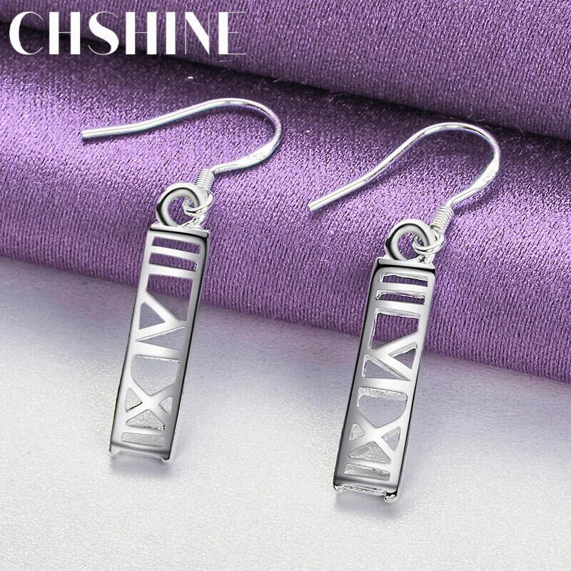 送料無料 CHSHINE 925 スターリングシルバースクエアローマ数字イヤリング女性の結婚式の婚約チャームジュエリー 指輪 銀 スクウェア AE0077766621901653017