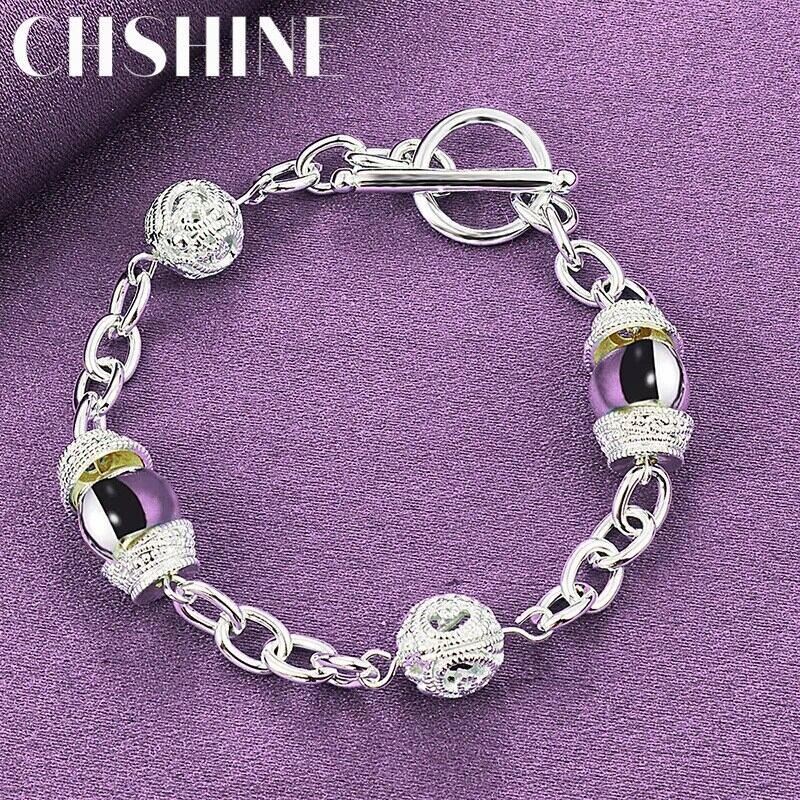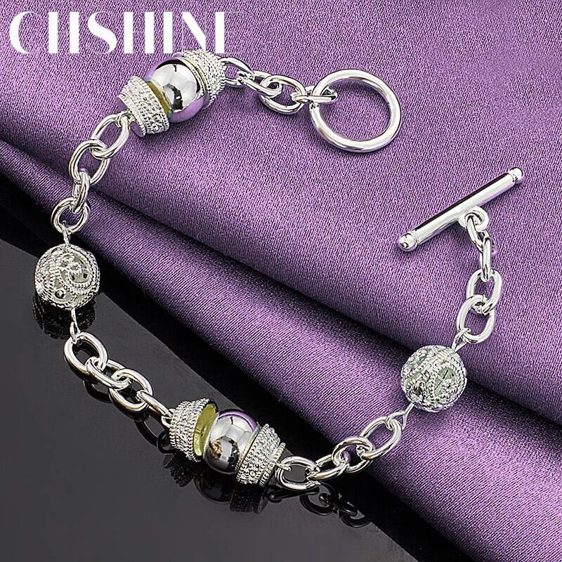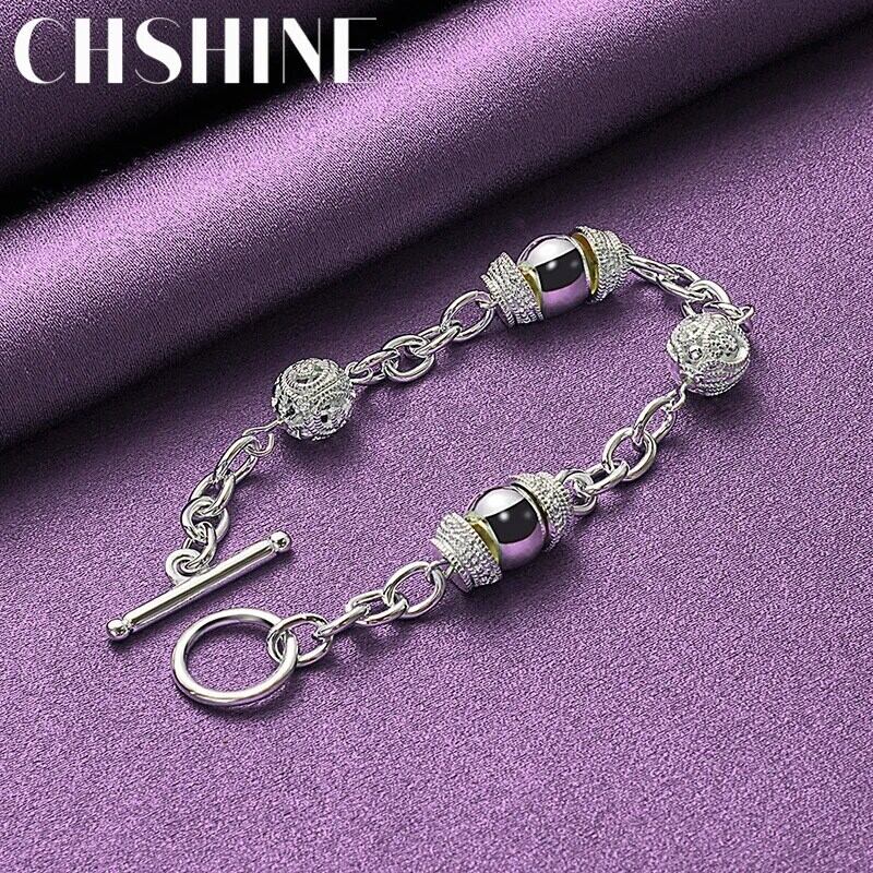 送料無料 CHSHINE ファイン 925 スターリングシルバーフィガロチェーンチャームブレスレット女性のウェディングパーティージュエリー 銀 AE0077766615611036523