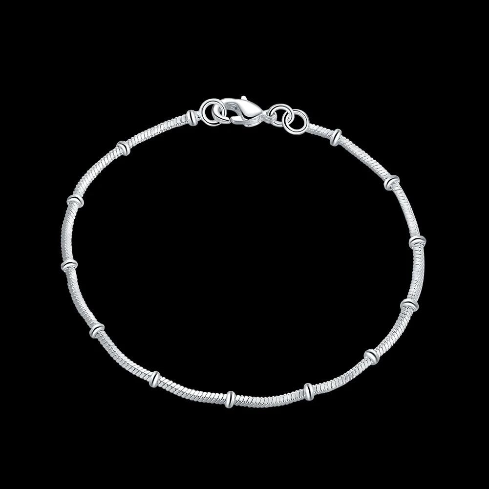 送料無料 ホットな新 925 スターリングシルバーブレスレット女性ファインヘビ骨ビーズチェーンファッションウェディングパーティークリスマス s ジュエリー 銀 AE0077766670536610963
