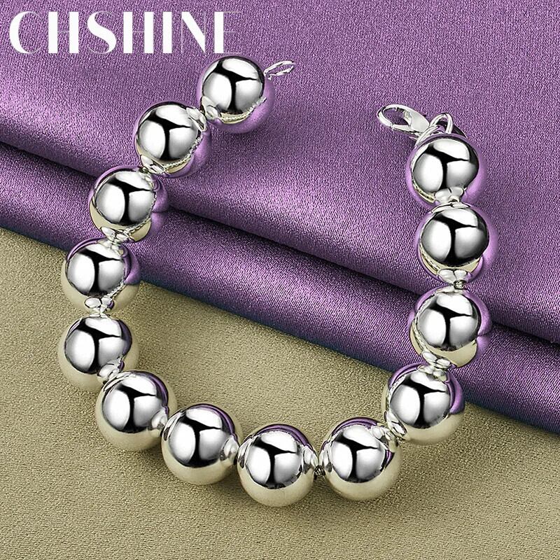送料無料 CHSHINE 925 スターリングシルバー 14 ミリメートルビーズブレスレット女性の結婚式婚約パーティーチャームジュエリー 銀 AE007776663015196139