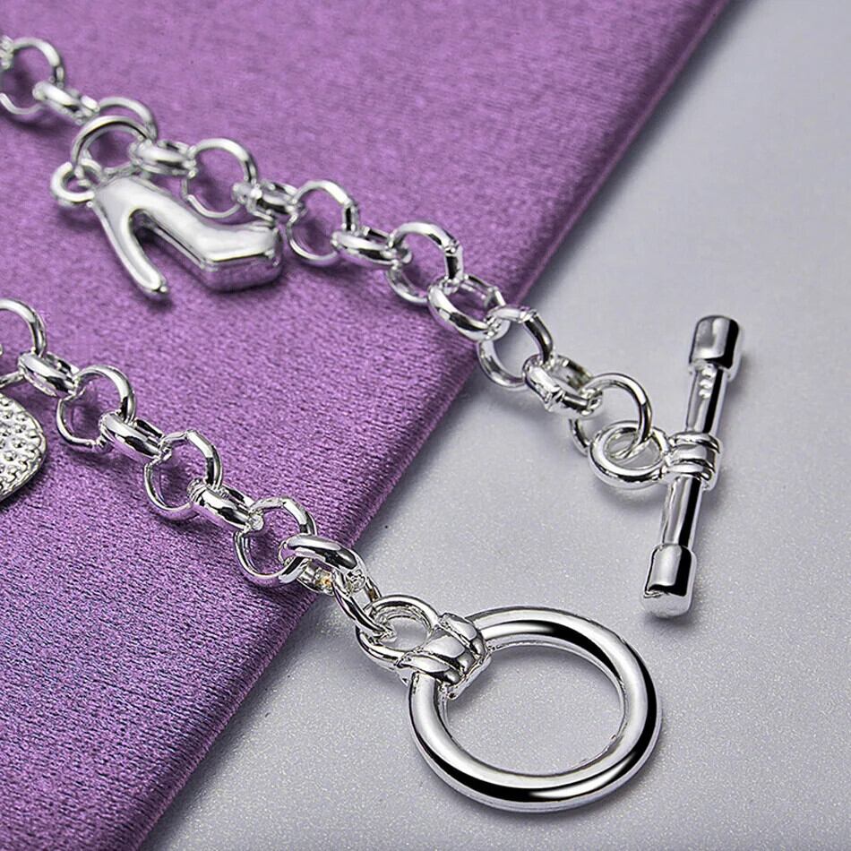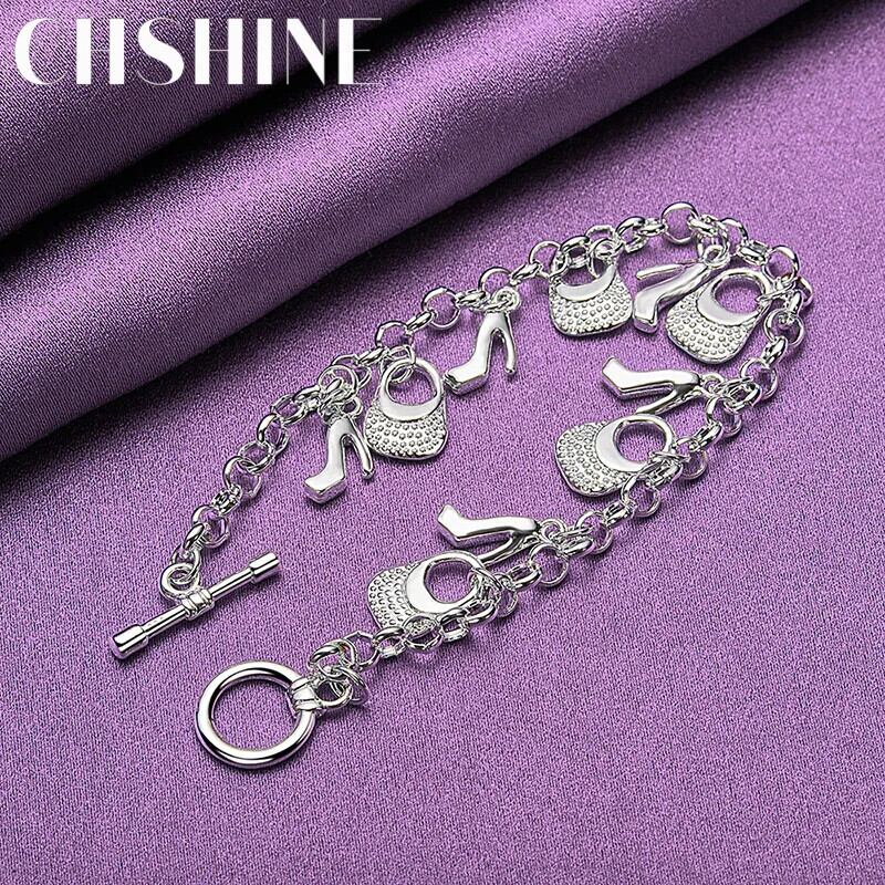 送料無料 CHSHINE 925 スターリングシルバーハンドバッグヒールチャームブレスレットパーティーギフト女性ジュエリー 靴 シューズ 銀 AE0077766690636769999