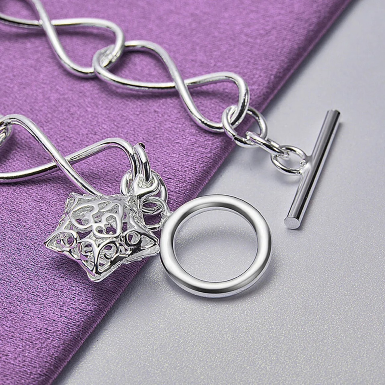 送料無料 CHSHINE 925 スターリングシルバー スター 8 ワード チェーン ブレスレット レディース チャーム ファインジュエリー 銀 AE0077766654192523356