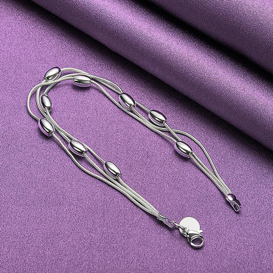 送料無料 CHSHINE 925 スターリングシルバー 3 スネークチェーンビーズブレスレット女性のウェディングパーティーチャームジュエリーギフト 銀 AE0077766631441564273