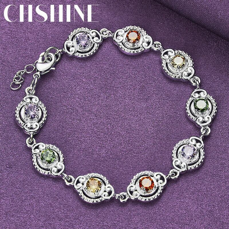 送料無料 CHSHINE 925 スターリングシルバーカラークリスタルチェーンブレスレット女性のウェディングパーティージュエリーギフト送料無料 銀 AE0077766611404185030