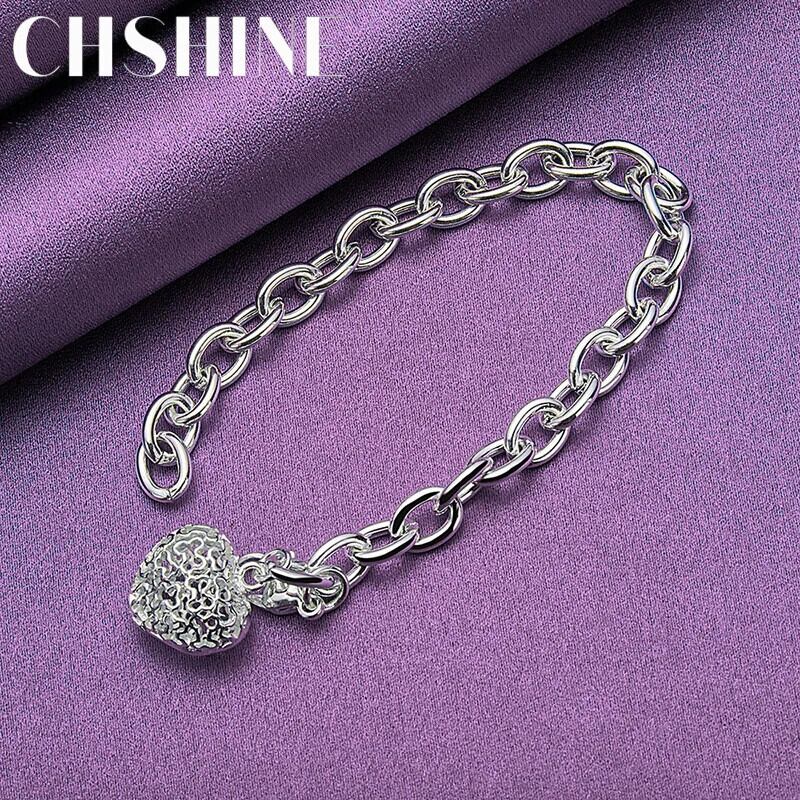 送料無料 CHSHINE ホット 925 スターリングシルバー中空ハートブレスレット女性の結婚式婚約パーティージュエリー 銀 AE0077766664351682485