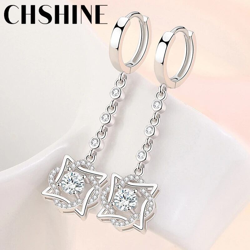 送料無料 CHSHINE 925 スターリングシルバー六芒星 AAAAA ジルコンイヤリング女性のウェディングパーティーギフトジュエリー 指輪 銀 AE0077766685075568136