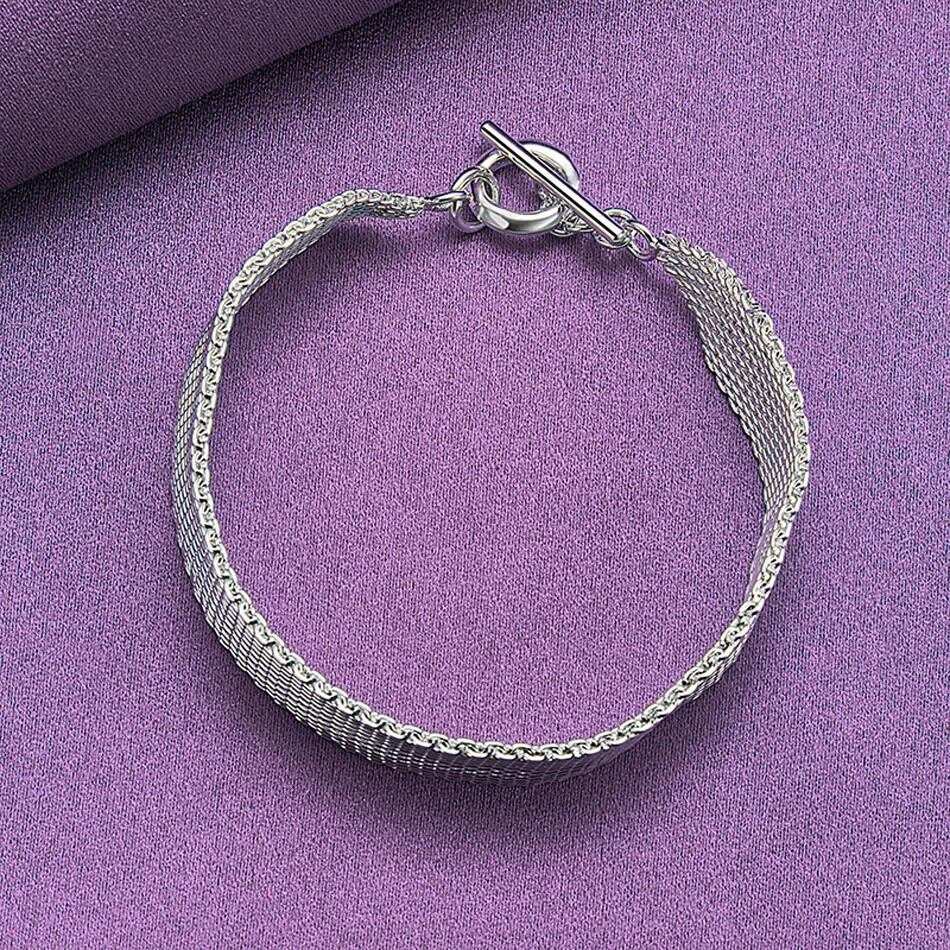 送料無料 CHSHINE 925 スターリングシルバー織メッシュブレスレット女性のウェディングチャームジュエリー 銀 AE0077766672575732116