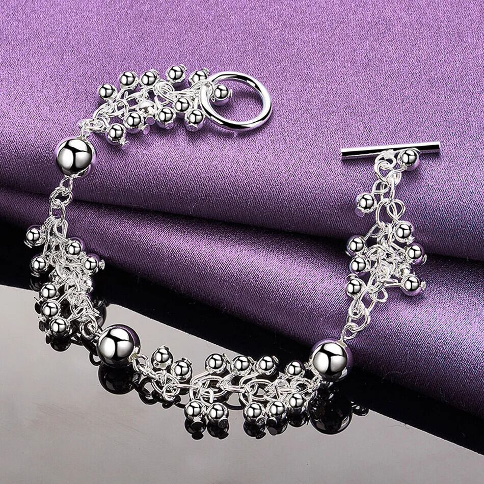 送料無料 CHSHINE 925 スターリングシルバー ブドウ ビーズ チェーン ブレスレット チャーム ウェディング パーティー レディース ジュエリー 銀 AE0077766613840152155