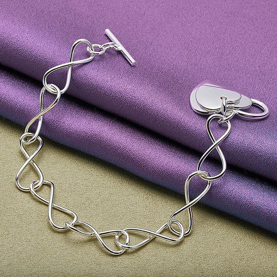 送料無料 CHSHINE 925 スターリングシルバーダブルハートブレスレット女性のウェディングパーティーチャームファインジュエリー 銀 AE0077766674266364443