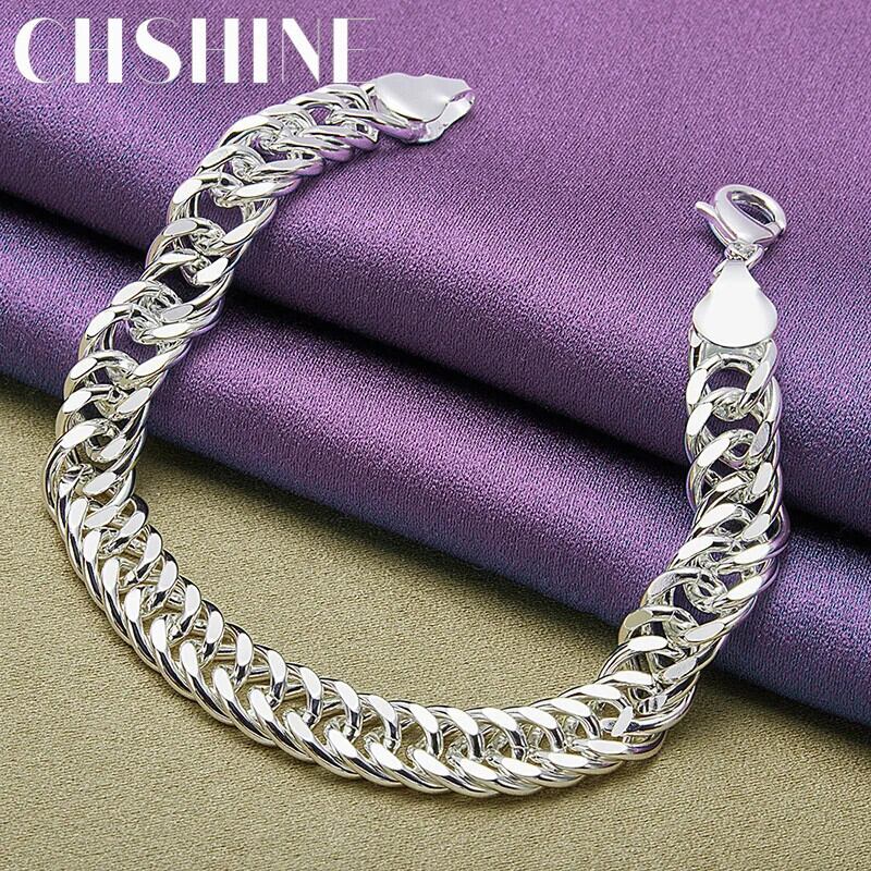 送料無料 CHSHINE 925 スターリングシルバー男性 10 ミリメートルサイドチェーンブレスレット女性チャームジュエリーウェディングパーティーギフト価格 銀 AE0077766666799166371