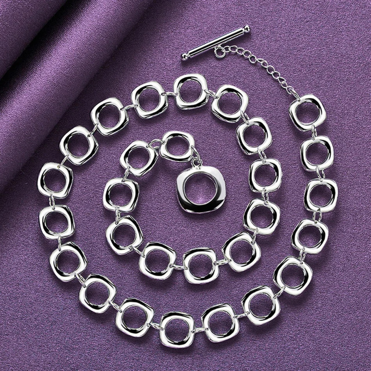 送料無料 CHSHINE 925 スターリングシルバーリングチェーンネックレスリングイヤリングブレスレット女性パーティーチャーム絶妙なジュエリーセットギフト レース 指輪 銀 AE0077766639140281784