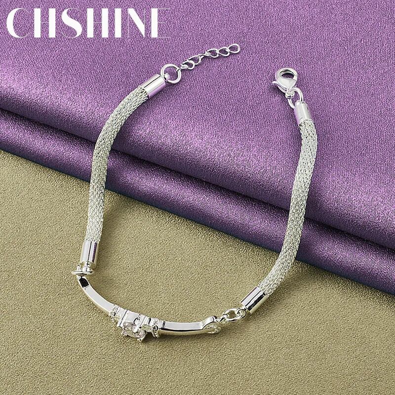 送料無料 CHSHINE ファイン 925 スターリングシルバー光沢のあるジルコンブレスレット女性のウェディングパーティーチャームジュエリーギフト 銀 AE007776669475623653