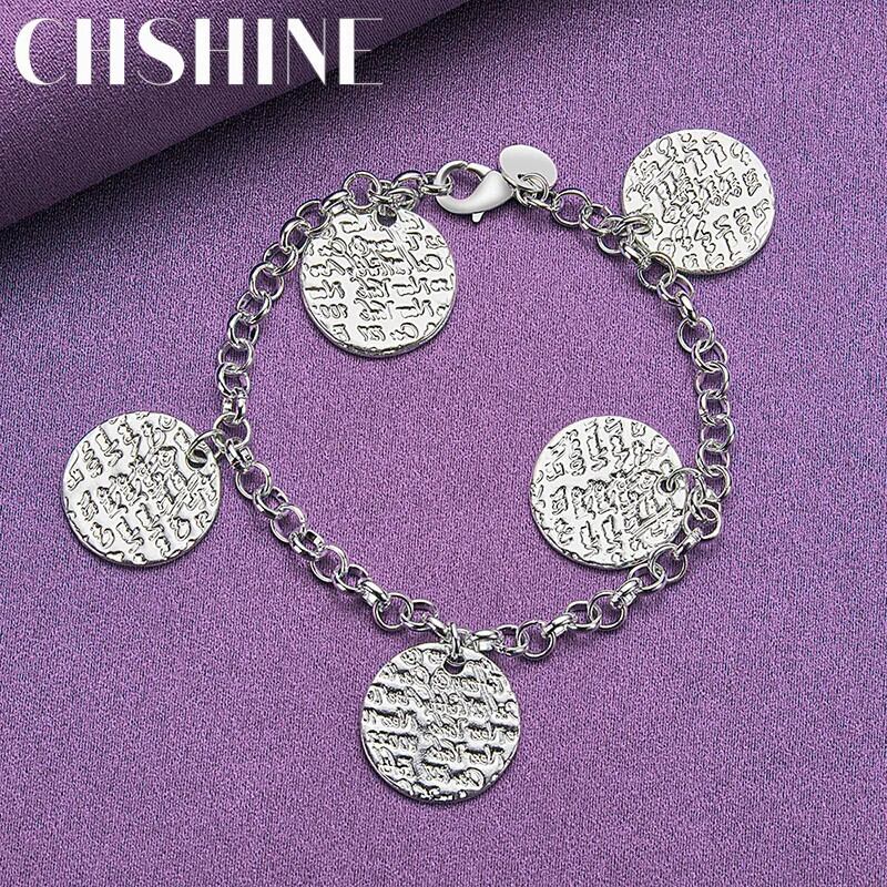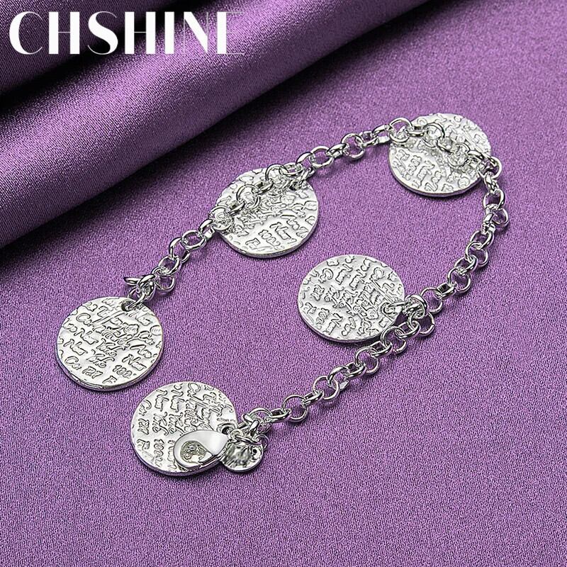 送料無料 CHSHINE 925 スターリングシルバーラウンドペンダントブレスレットチャームウェディングパーティー女性ジュエリーギフト 銀 AE0077766613147810282