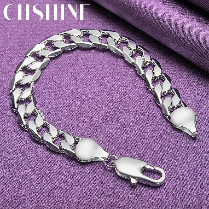 送料無料 CHSHINE 925 スターリングシルバーサイドチェーン 12 ミリメートルブレスレット女性男性チャームジュエリーギフト 銀 AE0077766662608945868