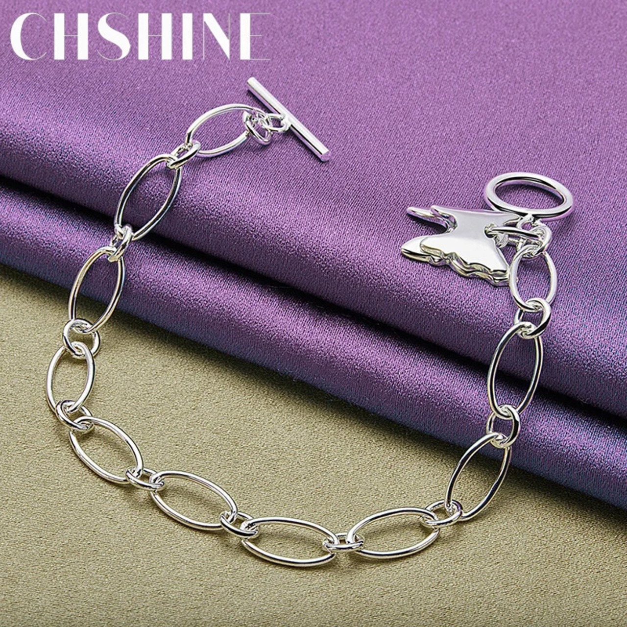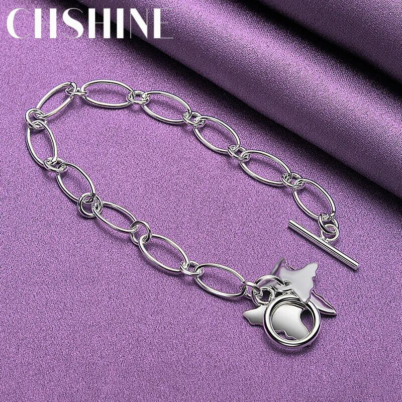 送料無料 CHSHINE 925 スターリングシルバーダブルバタフライペンダントブレスレット女性 OT チェーンチャームジュエリー 銀 AE0077766663241253160