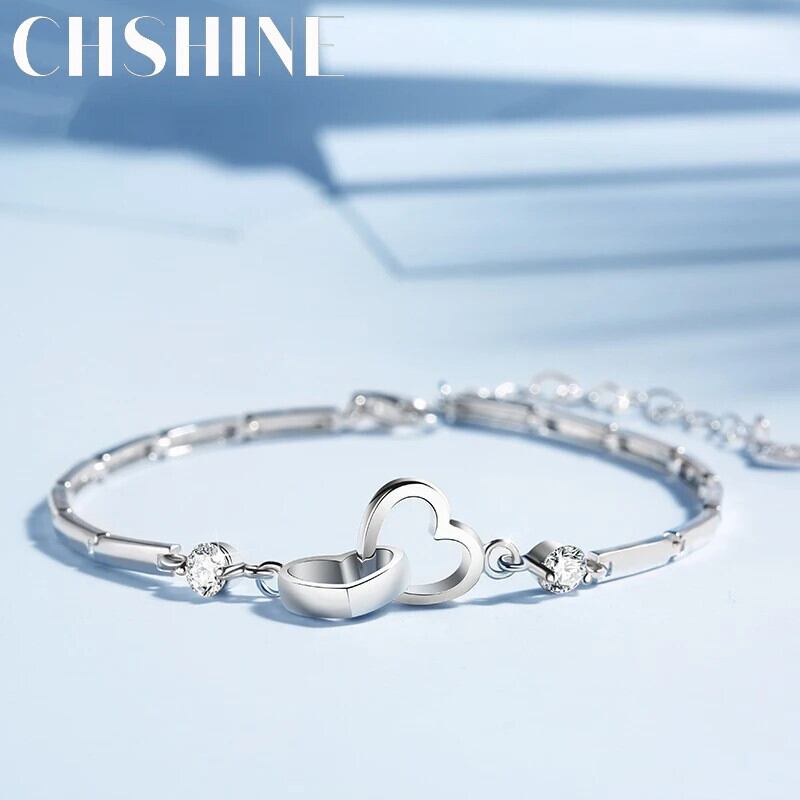 送料無料 チャーム 925 スターリングシルバーブレスレットバングル女性ガールバレンタインデージルコン結婚式ラブハートジュエリー 銀 AE0077766637486478741