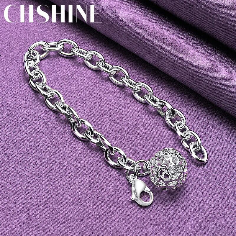 送料無料 CHSHINE 925 スターリングシルバー中空ボールペンダントブレスレット女性チャームジュエリーギフト 銀 AE0077766638823882253