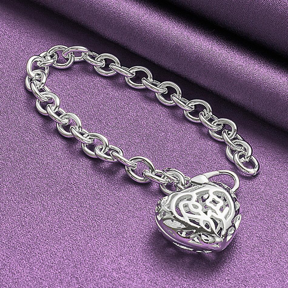 送料無料 CHSHINE 925 スターリングシルバーチャーム中空ハートブレスレット女性のウェディングパーティージュエリー 銀 AE0077766616093452021